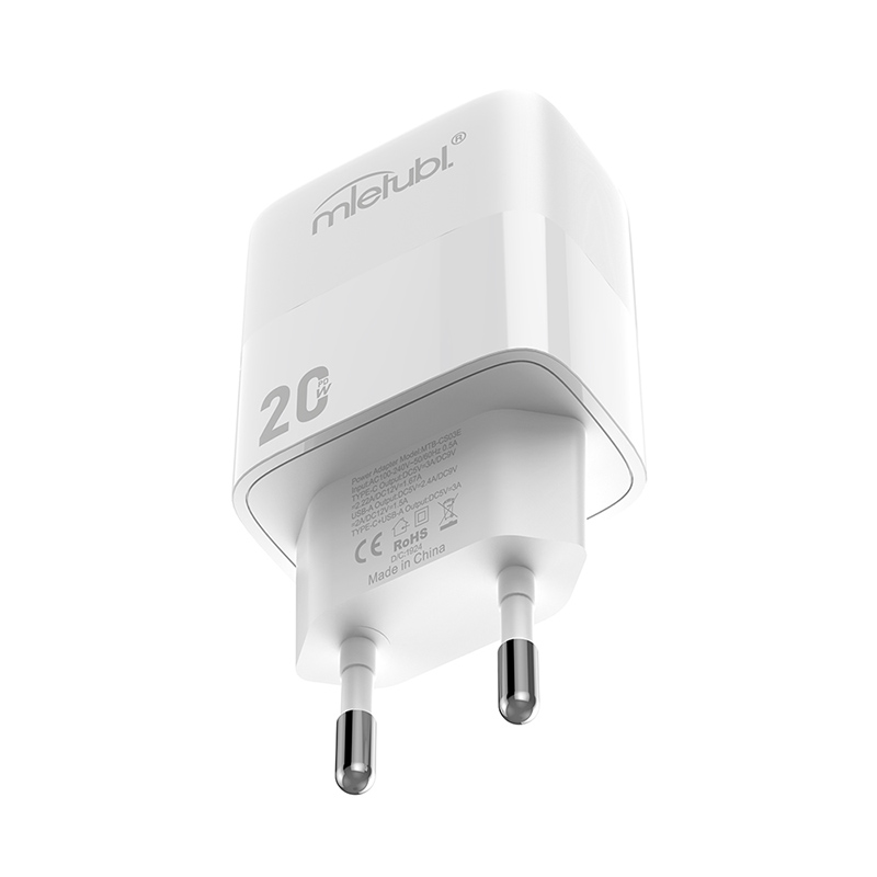 Constructed from a robust combination of ABC and PC materials, the USB+Type-C PD20W wall charger offers durability and resilience against wear and tear. These materials provide not only a sturdy exterior but also effective heat dissipation during charging.